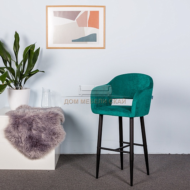 Кресло барное Oscar, велюровый изумрудного цвета/черный