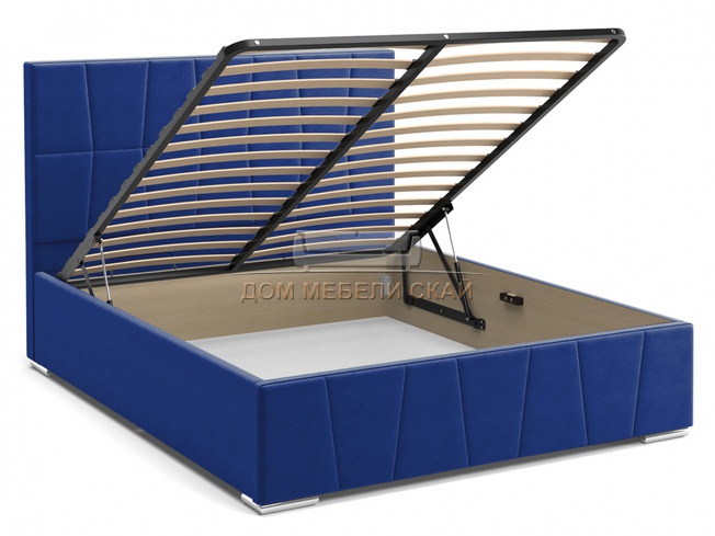 Кровать двуспальная 160x200 Пассаж с ПМ , синий велюр