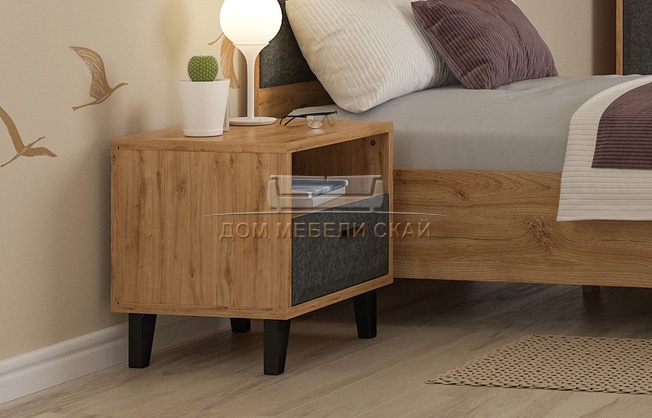 Тумба прикроватная GRACE Грейс KOM1S, дуб наварра/графит (3,2 MБ)