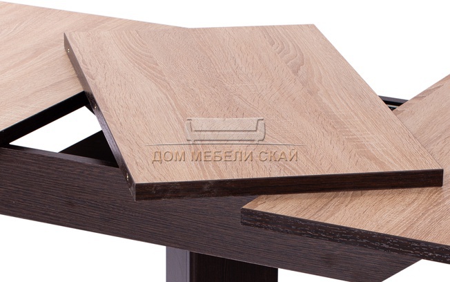 | Механизм раскладки стола | синхронно-раздвижной, вставка цельная, шириной 37 см, выполнена из ЛДСП под цвет столешницы, извлекается из основания вручную | |||