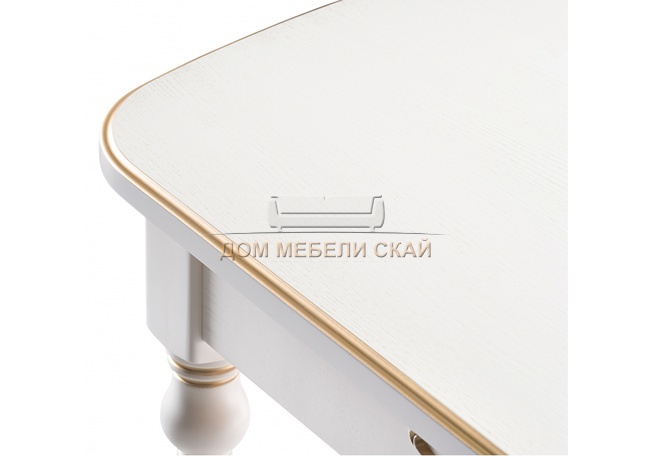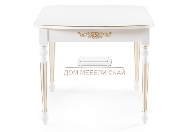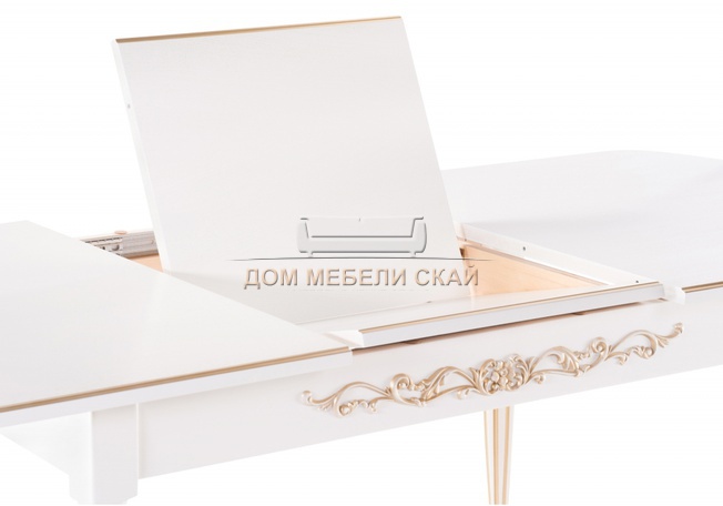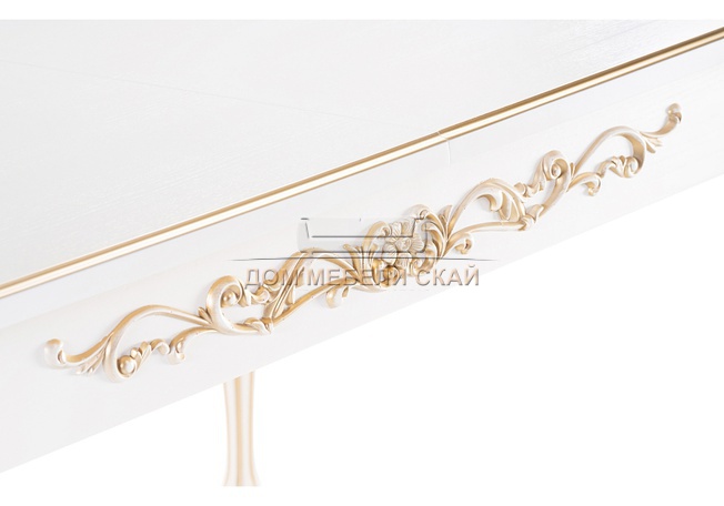 Стол обеденный раскладной Бевье, молочный/патина золото