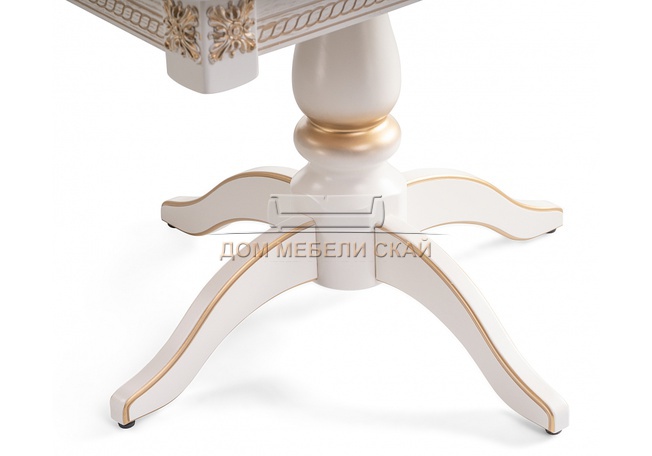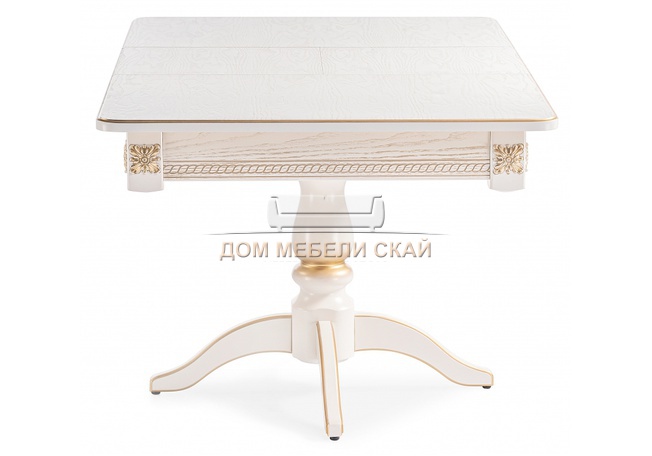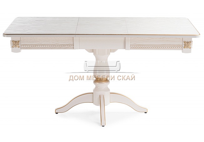 Стол обеденный раскладной Матис, молочный/патина золото