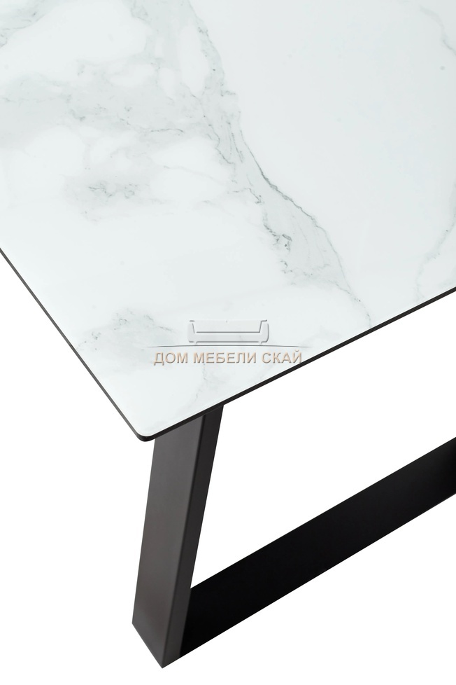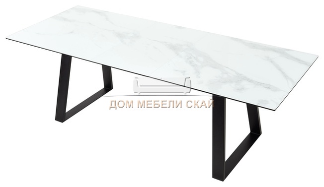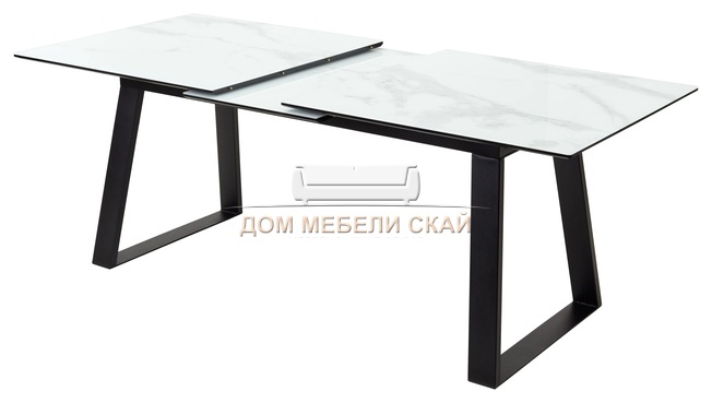 Стол обеденный раскладной Франк 160, белый мрамор стекло/черный (135,9 KБ)