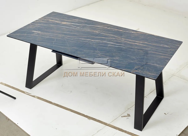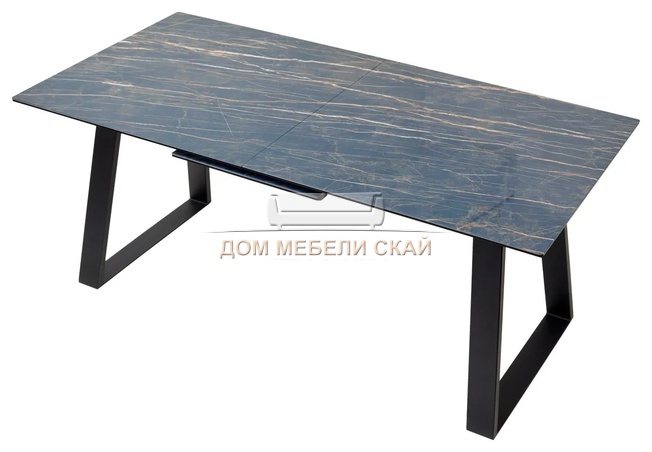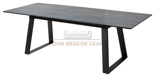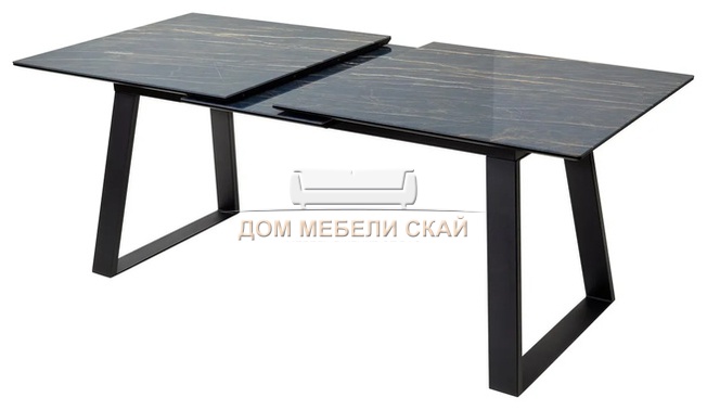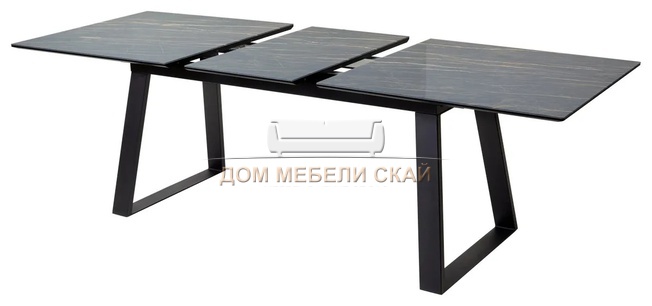 Стол обеденный раскладной Франк 180, белый мрамор стекло/черный (135,9 KБ)