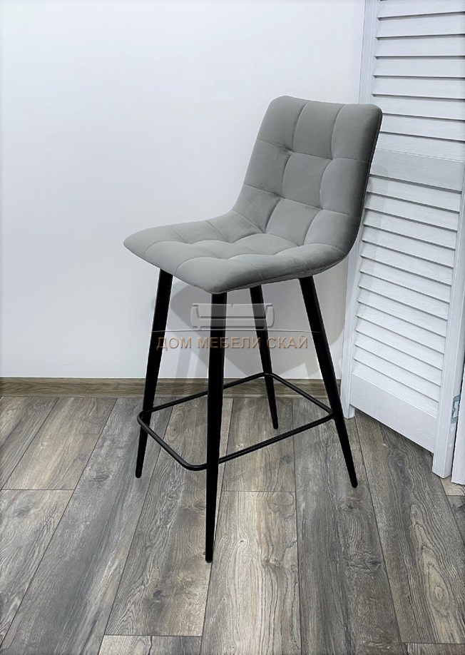 Полубарный стул CHILLI-QB, велюровый светло-серого цвета #26/черный каркас