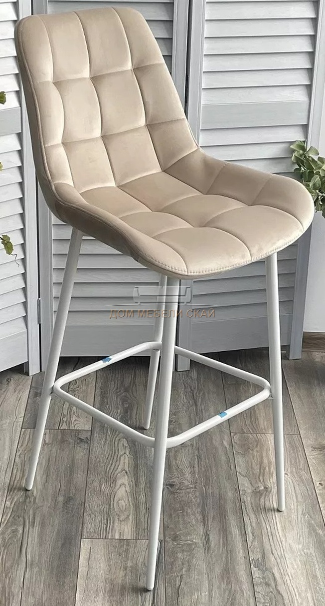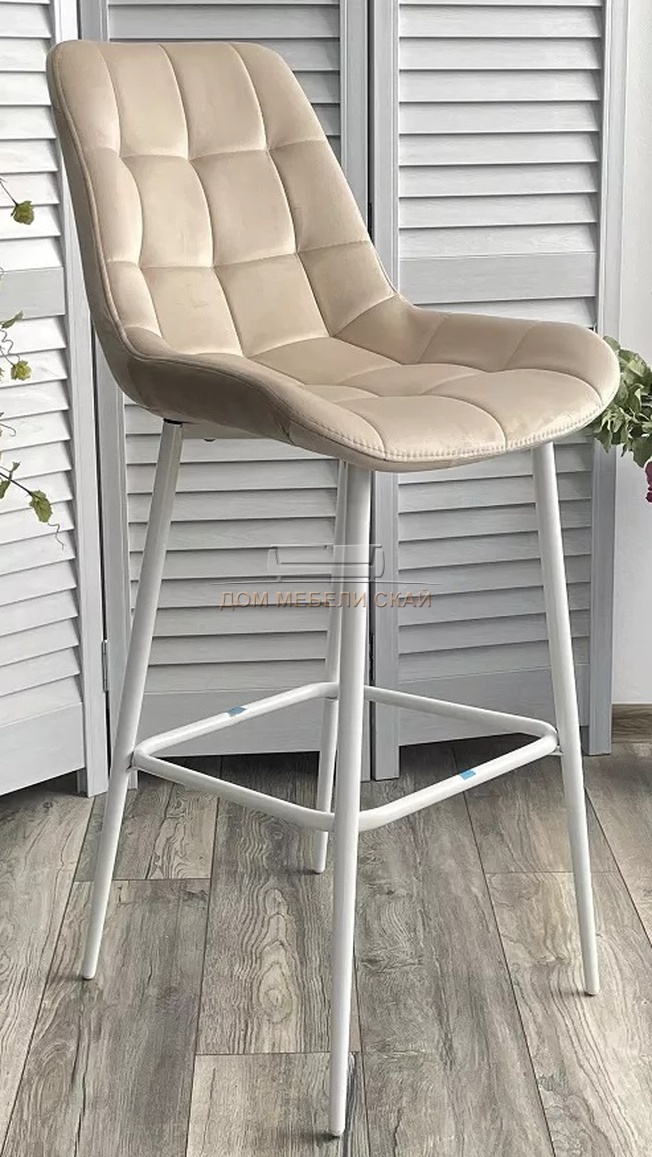 Барный стул ХОФМАН, велюровый бежевого цвета H-06/белый каркас