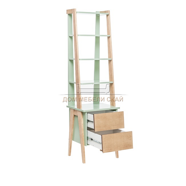 Этажерка Leset Сканди с тумбой 2 ящика, дуб шпон/олива