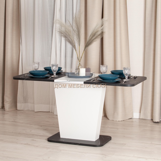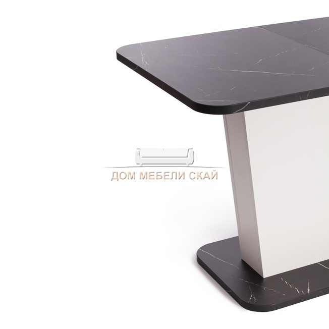 Стол обеденный раскладной GENT, мрамор блэк роял/белый