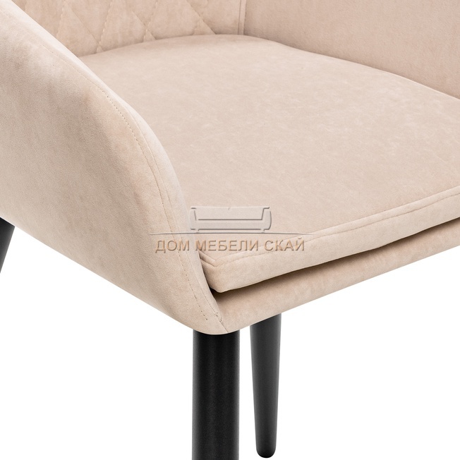 Стул с подлокотниками Leset Слим, велюровый бежевого цвета/черный