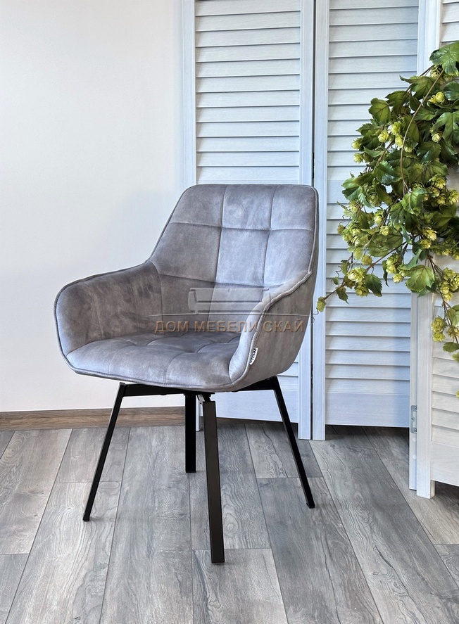 Стул поворотный MAVERICK, велюровый светло-серого цвета VT5001-7 античный/черный