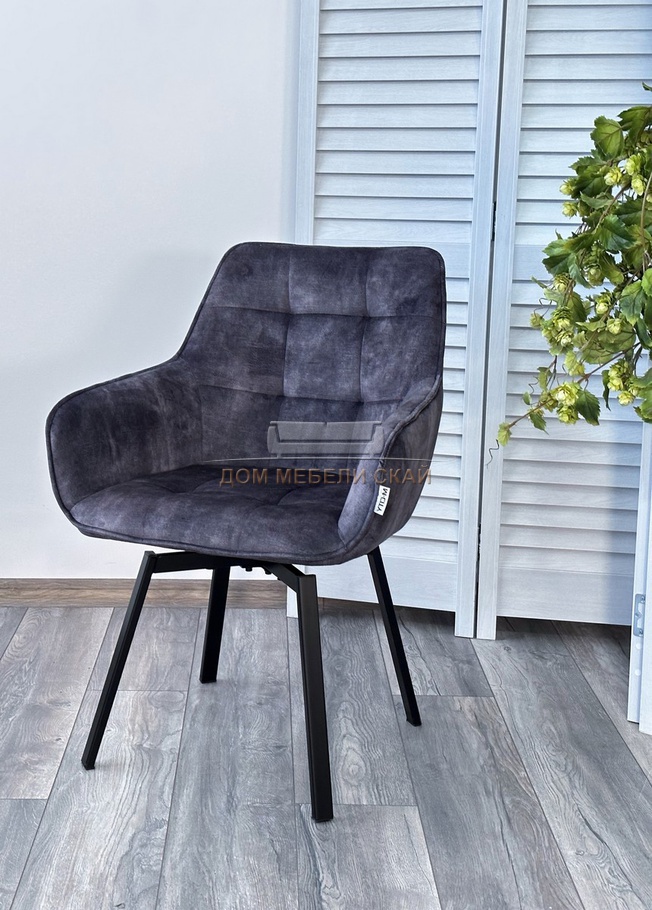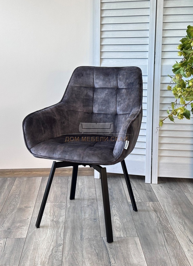 Стул поворотный MAVERICK, велюровый серого цвета VT5001-3 античный/черный