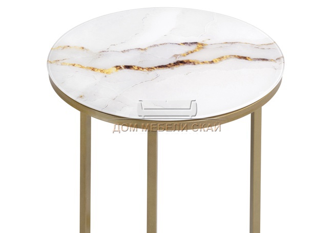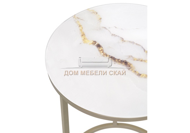 Журнальный стол Иберис круглый, белый мрамор/золото