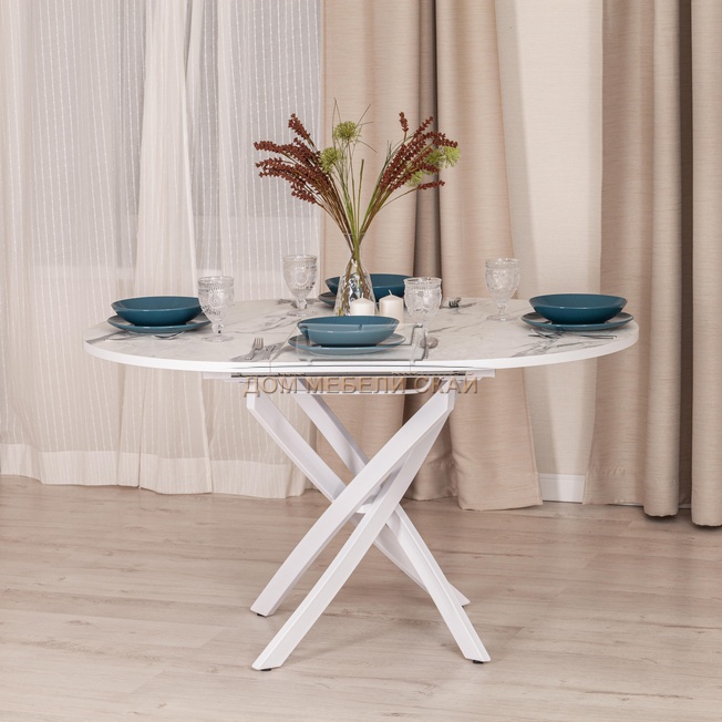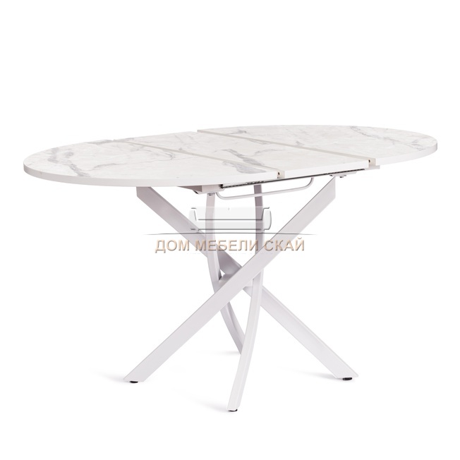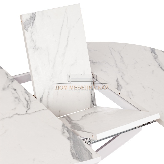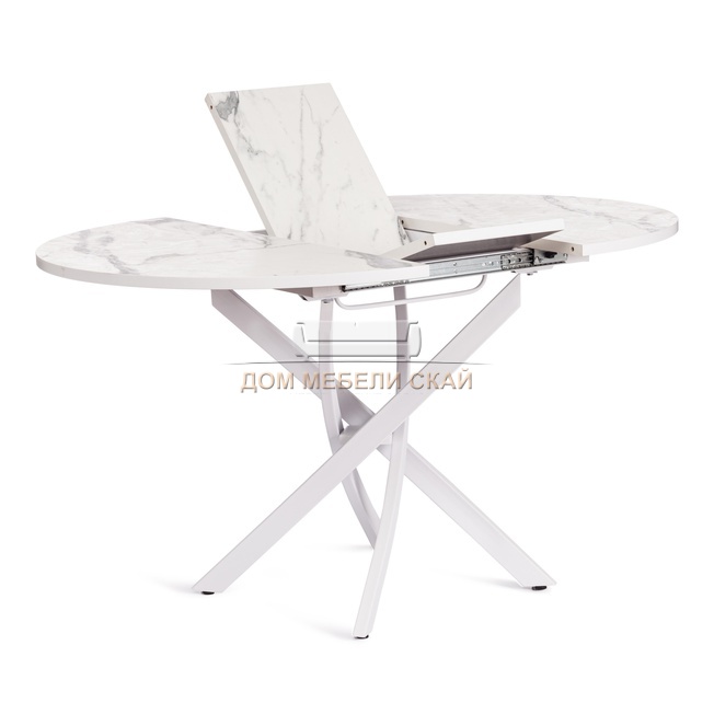 Стол обеденный круглый раскладной MANZANA, мрамор светлый/чёрный