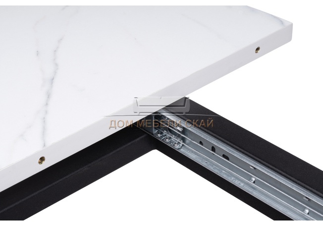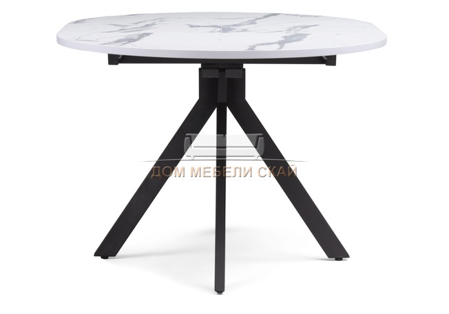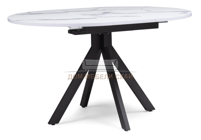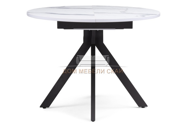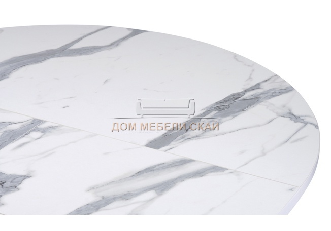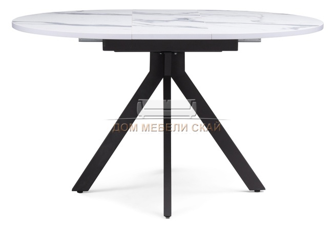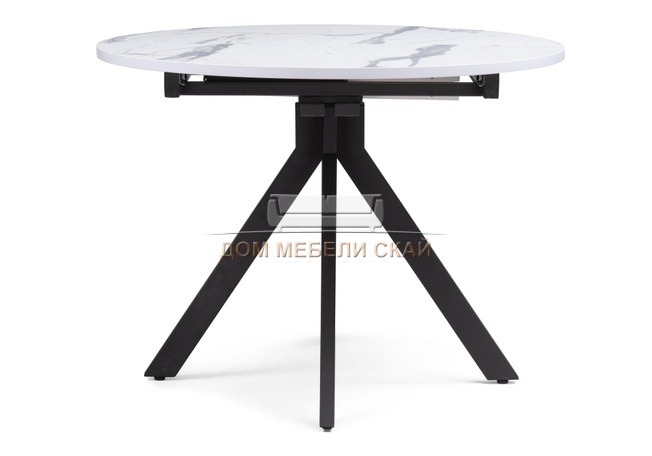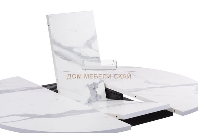 Стол обеденный круглый раскладной Бетина, мрамор белый/черный