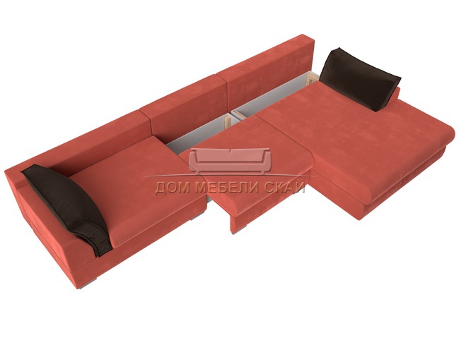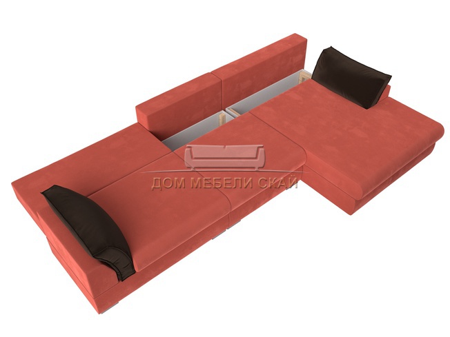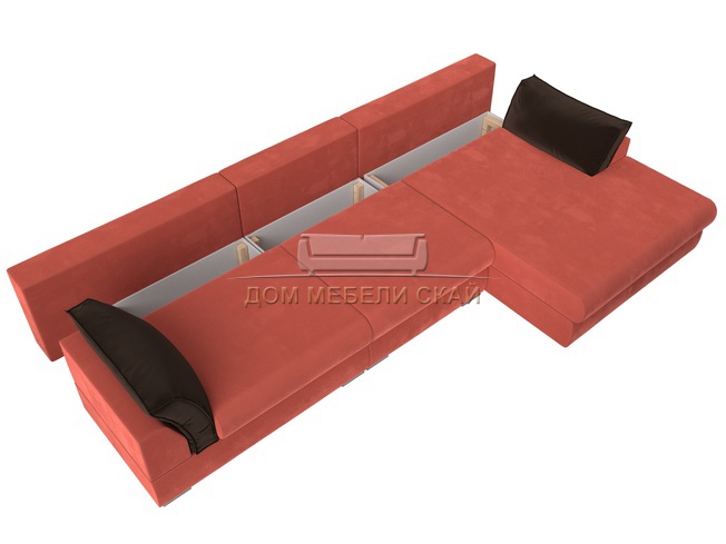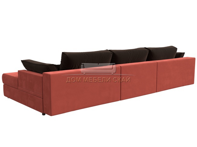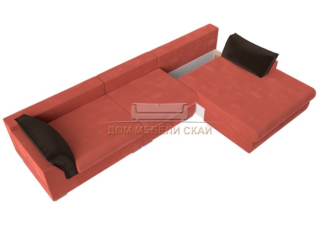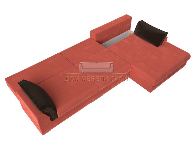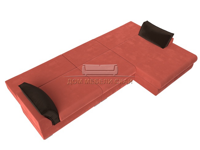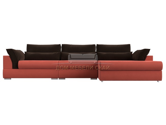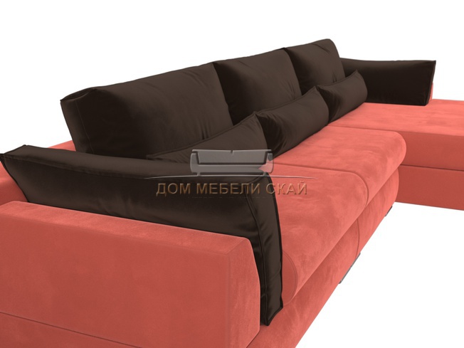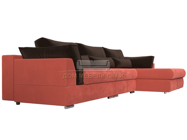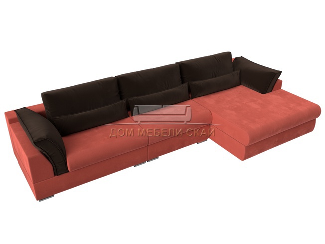 Угловой диван Пекин Long правый, микровельвет коралловый/коричневый